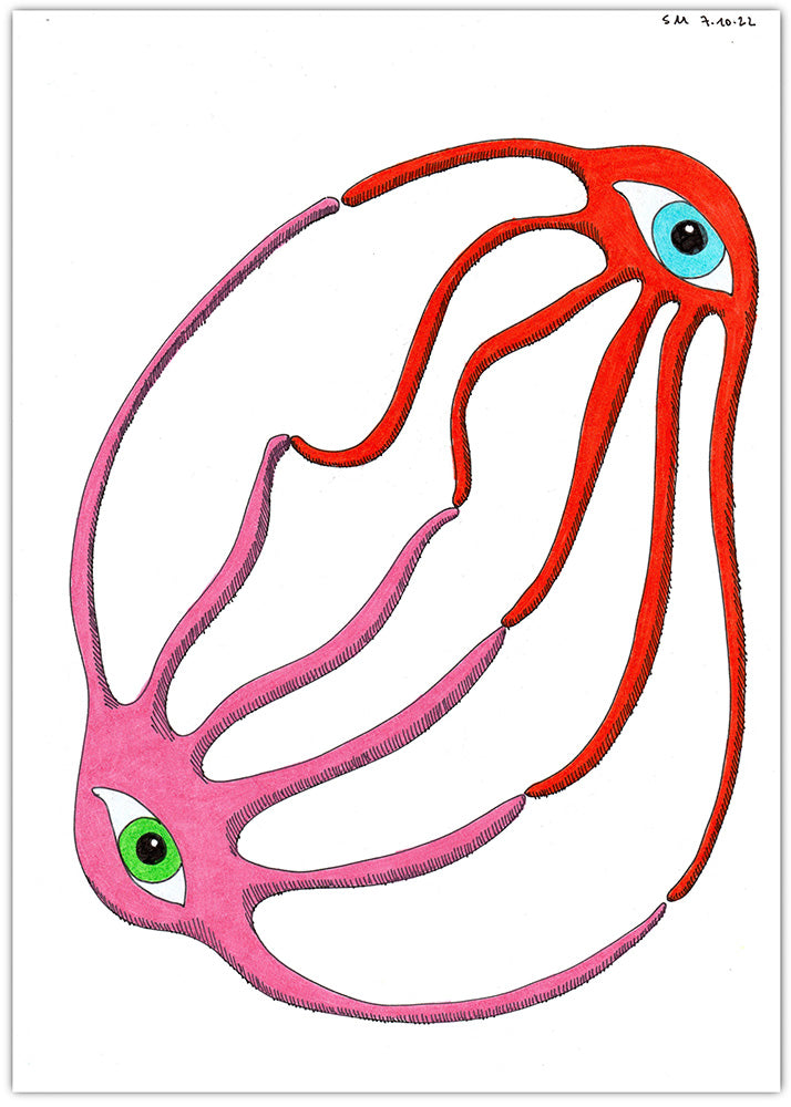 The Happyversum is a vision of living together motivated by the warmness of heart. The »strong friends« are ambassadors of this world, they are free of obsessive conventions or stereotypes. Smiling contentedly like bodhisattvas they inspire us to do alike - to just be.