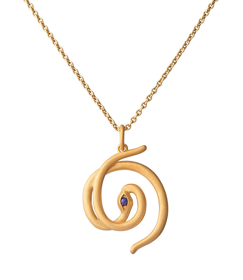 The necklace is made of 18k gold-plated 925 sterling silver and a blue sapphire. The length of the chain is 55cm.