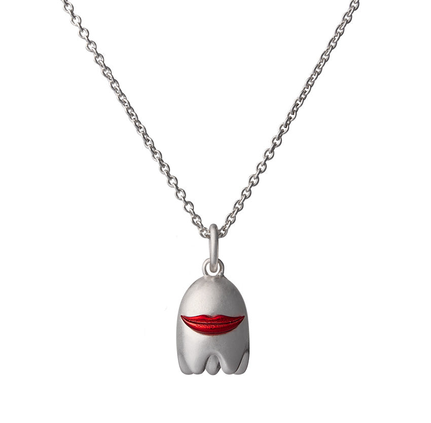 The necklace is made of 925 sterling silver and a special red varnish. The length of the rhodium plated 925 sterling silver chain is 55cm.